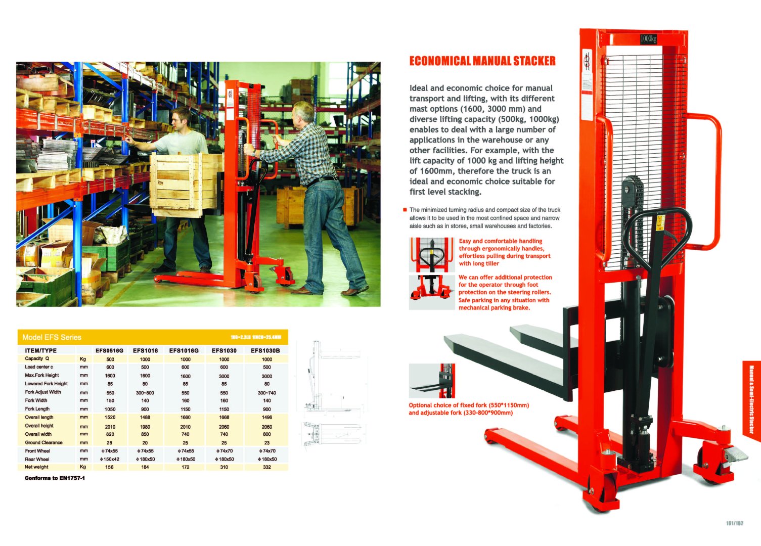 EFS1030 Manual Stacker Truck – 1000kg – 550 x 1150mm – 3.0m Lift