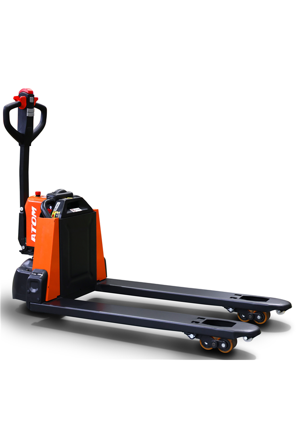 The PTE15Q ATOM is a compact lithium-powered electric pallet truck designed for light-to-medium duty material handling where you want powered travel without stepping up to a full size rider unit.